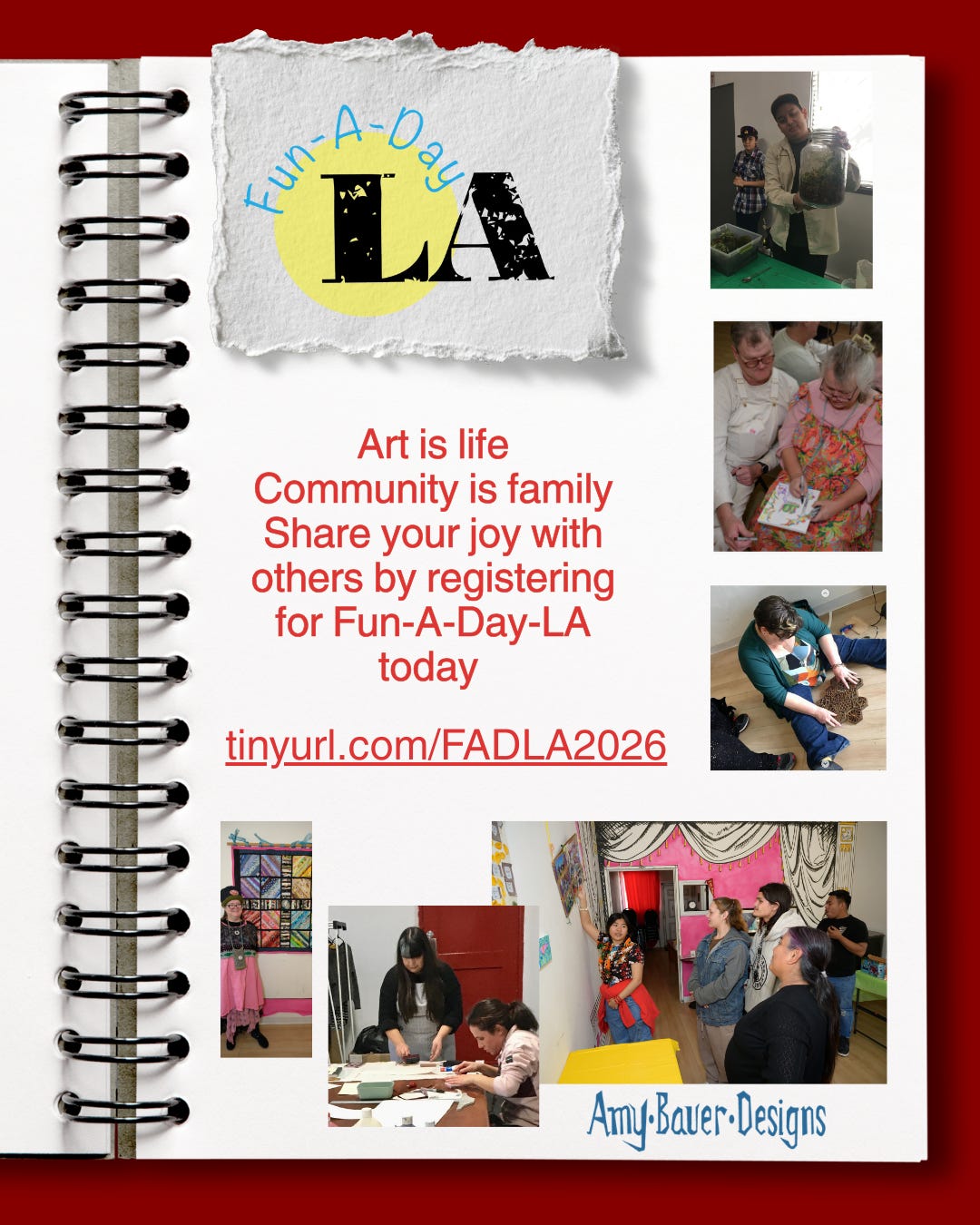 Did I mention that Fun-A-Day-LA is a free community art show? It is absolutely free to join. Requires no skill. And is open to all forms of art. So far this year we have….. game design, poetry, painting, singing, journaling, crocheting, ceramics, collage, drawings, blacklight art, photography, clothing and more, much much more!